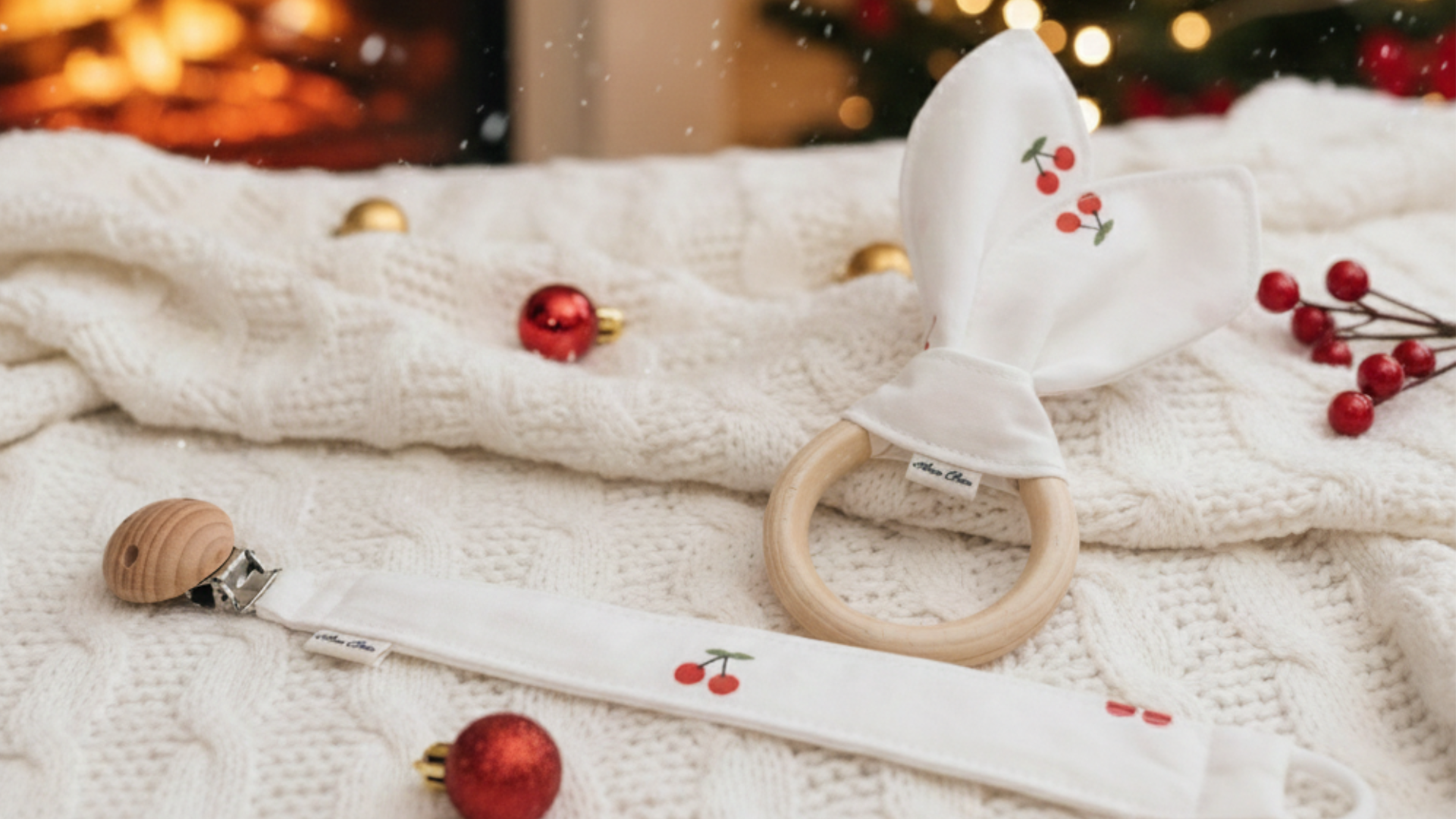 AanbiedingSpeenkoord met naam stof wit met kersjes