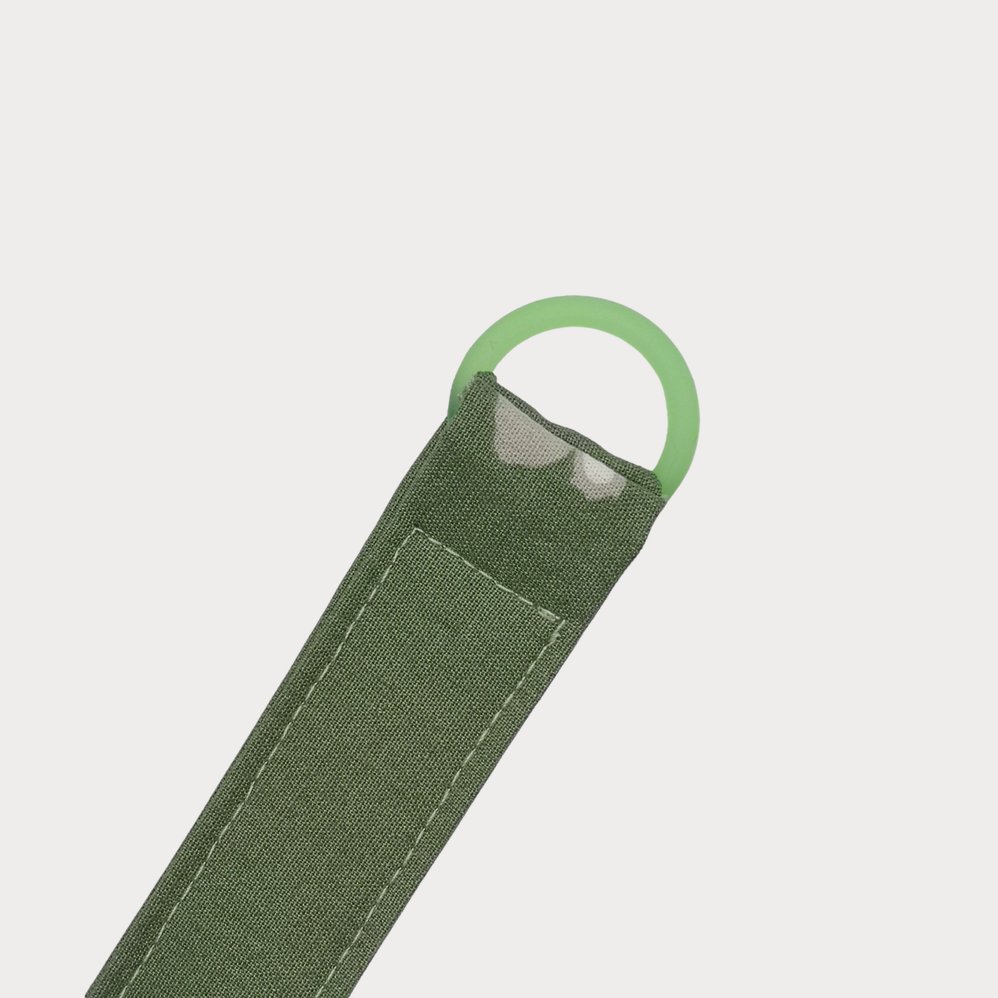 Dit handgemaakte speenkoord van Ana Eleia is niet alleen praktisch, maar ook stijlvol. Het koord is gemaakt van 100% katoen in een mooie groene kleur en afgewerkt met een schattige koala-print, een houten speenclip en een siliconen ring.