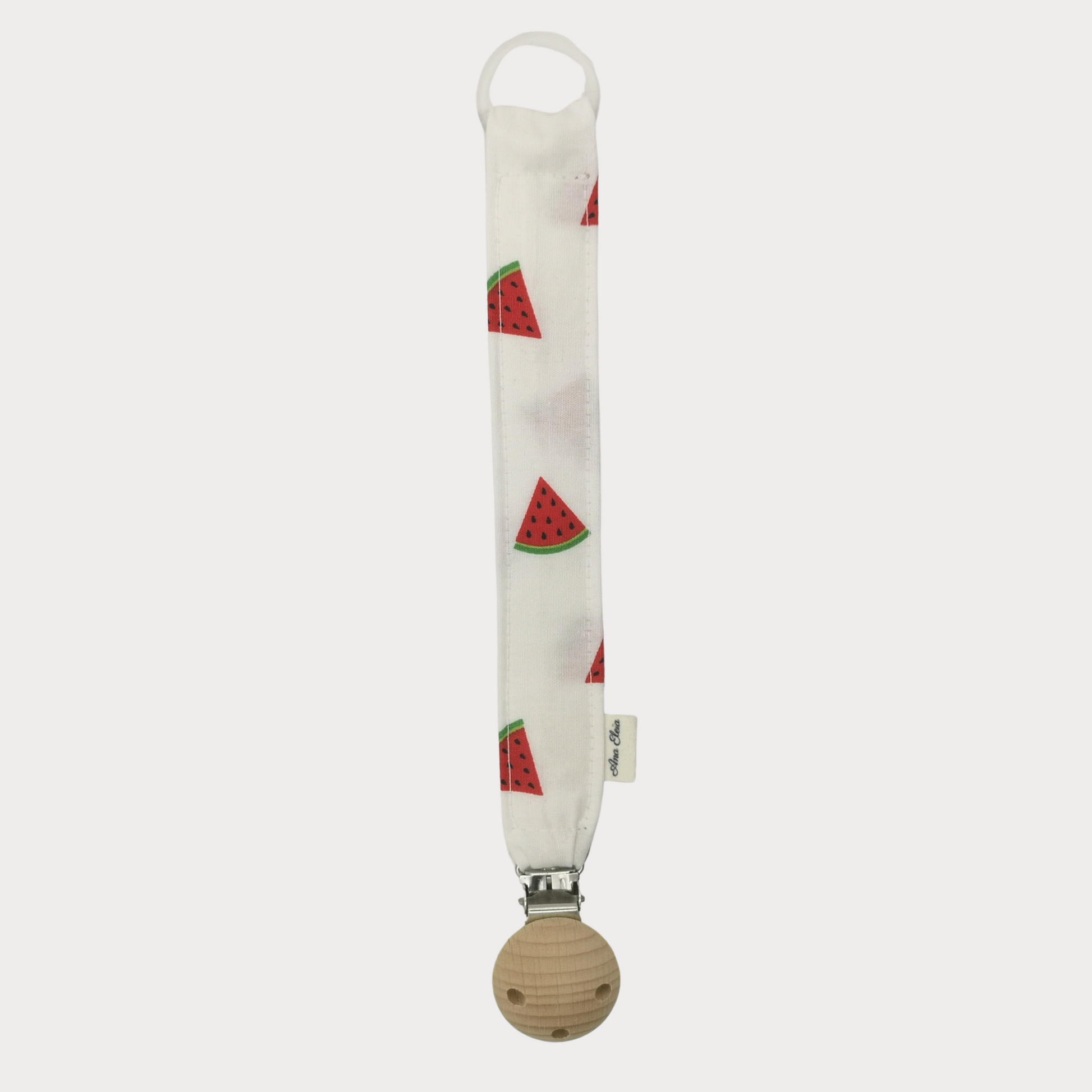 Omdat elk speenkoord uniek is, kan de watermeloen op een andere plek zitten dan op de foto. Zo heb je altijd een origineel product dat met veel zorg en liefde is gemaakt.